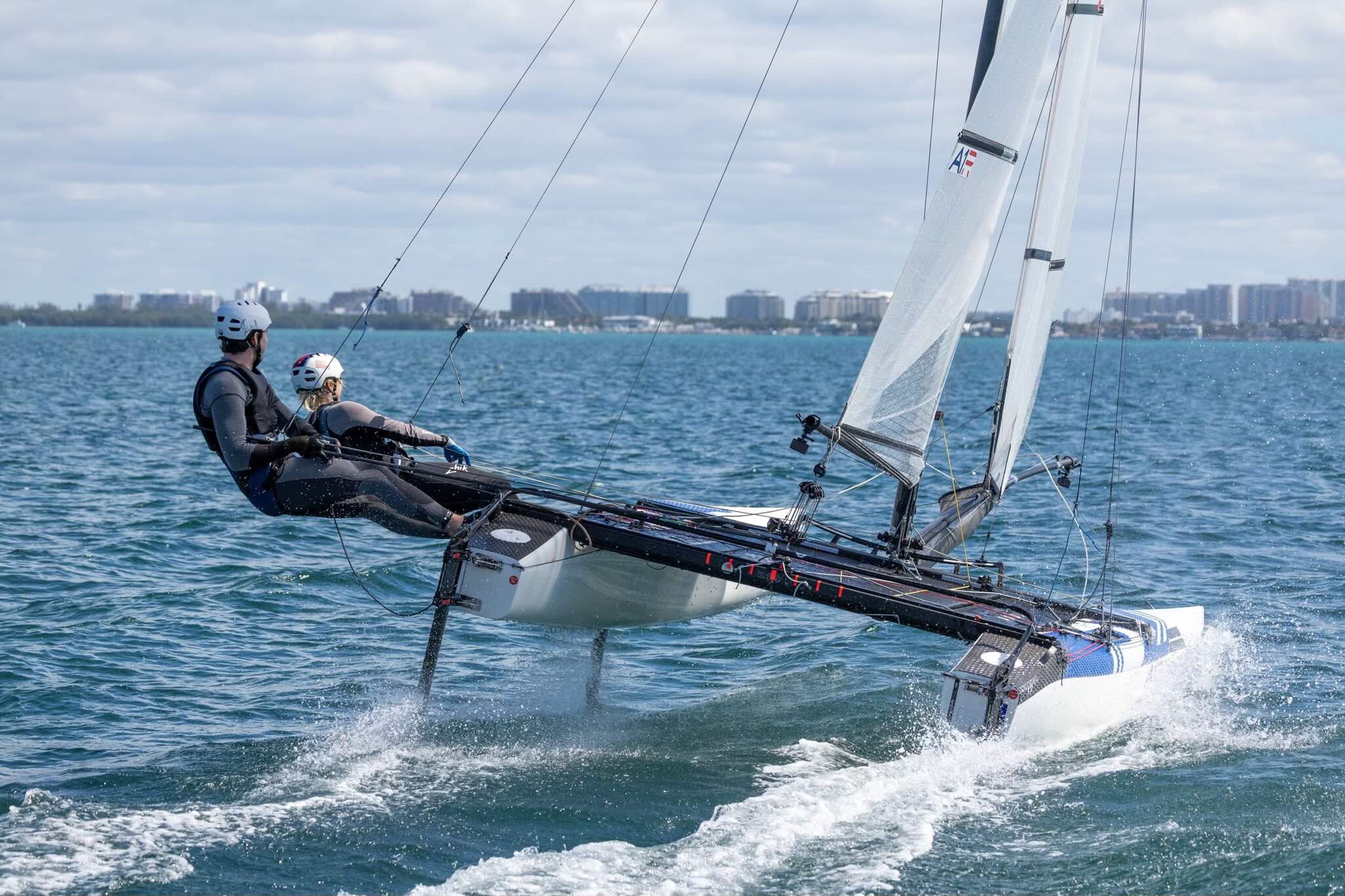 Following a recent training block in Miami, the pair is already finding rhythm. The Nacra rewards cohesion and punishes hesitation. Progress comes through relentless repetition and honest feedback. Two distinct sailing paths now converge in one boat. What drives them forward isn’t résumé lines…it’s shared accountability, daily commitment and belief in what they can become together.